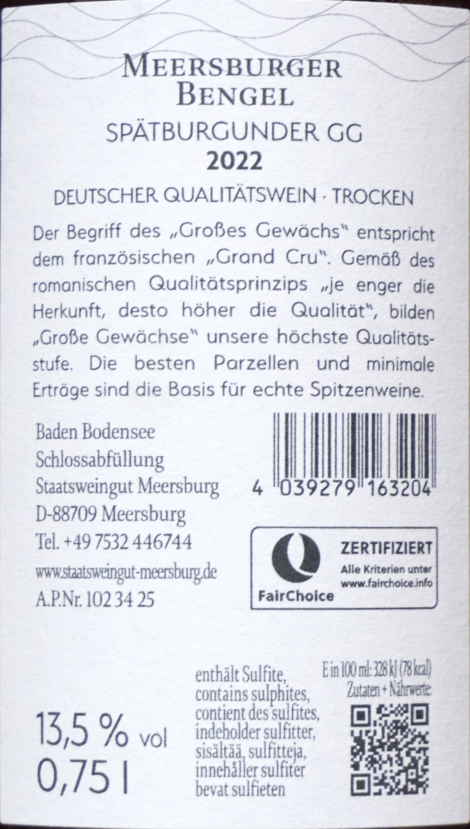 Sehr wertig kommt er daher: schwere Flasche mit eingeprägtem Wappen, mehr Gold auf dem Etikett, aber ein Schraubverschluss! Das geht also inzwischen auch in dieser Liga. Sehr würzig, Kräuter und Pfeffer, komplex aber schlank, im Stil anders als der andere Bengel mehr deutsch als Burgunder. Schade! Zweifellos ein sehr guter Wein, aber damit gefällt er mir nicht so. Beim Hersteller 34,90 €